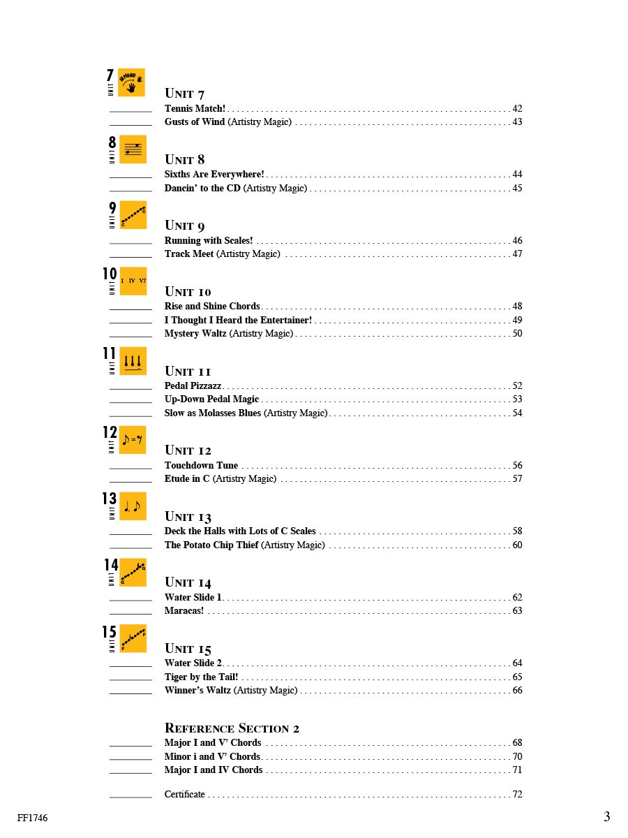 Technique & Artistry Book 2 combines “Technique Secrets” from levels 2A and 2B with new exercises and “Artistry Magic” pieces that correlate with Accelerated Piano Adventures Lesson Book 2. These elegantly simple “technique secrets” build a solid technical foundation for the older beginner and are used as daily warm-ups throughout the book. Students are guided to produce a variety of pianistic motions always with the purpose of creating artistic sounds.