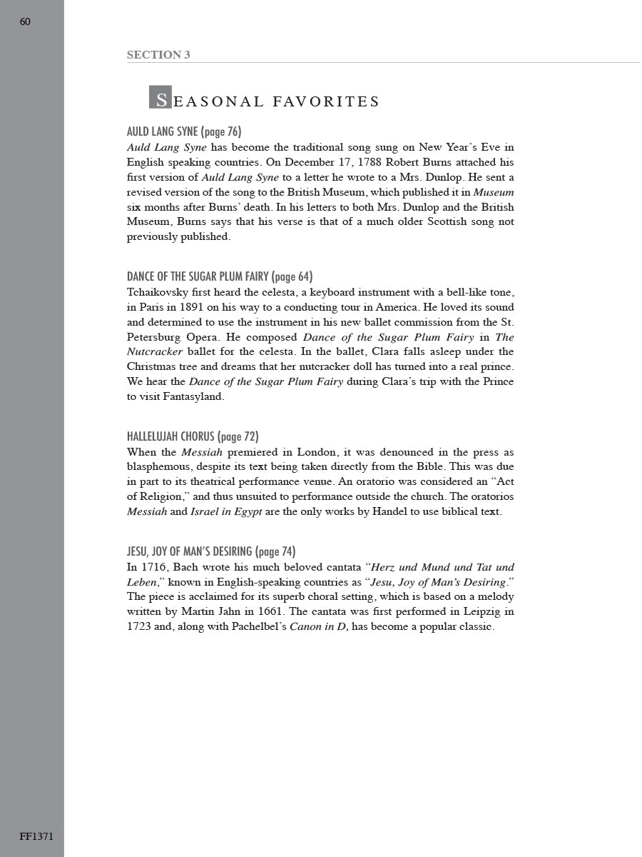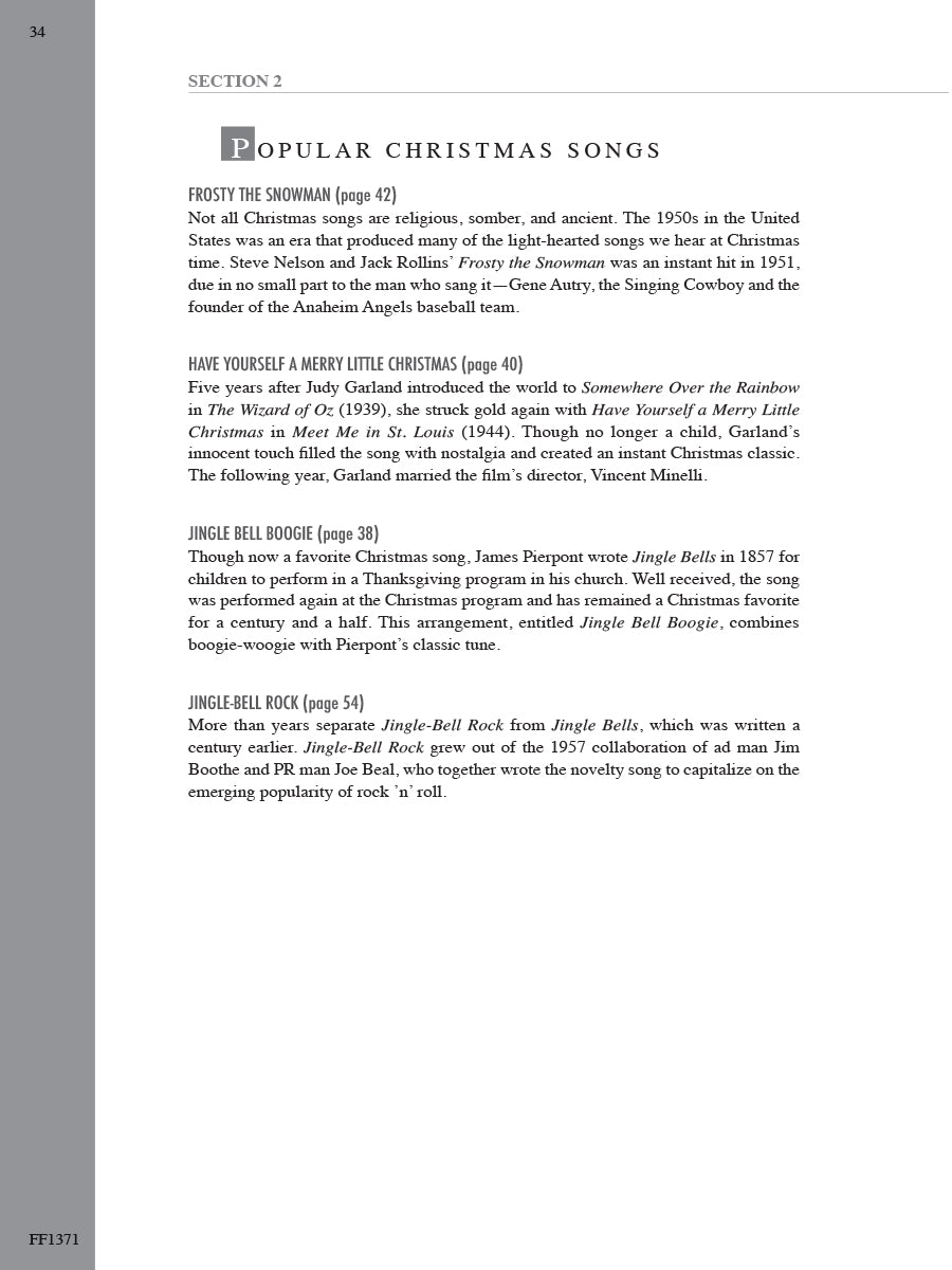 Adult Piano Adventures Christmas Book 2 offers sophisticated-sounding holiday music, pianistically arranged for the early intermediate player and organized into three sections: Traditional Christmas Carols, Popular Christmas Songs, and Seasonal Favorites. Contents include: Angels We Have Heard on High • Away in a Manger • Silent Night • The First Noel • What Child Is This • Pat-a-Pan • O Little Town of Bethlehem • O Come, All Ye Faithful • God Rest Ye Merry, Gentlemen • Joy to the World • Hark! The Herald Angels Sing • Winter Wonderland • Let It Snow! Let It Snow! Let It Snow! • Sleigh Ride • and more. Online access to audio recordings of the piano selections is included, as well as orchestrated accompaniments for play-along fun. [playlist artists="false" images="false" ids="3177,3179,3174,3176"]