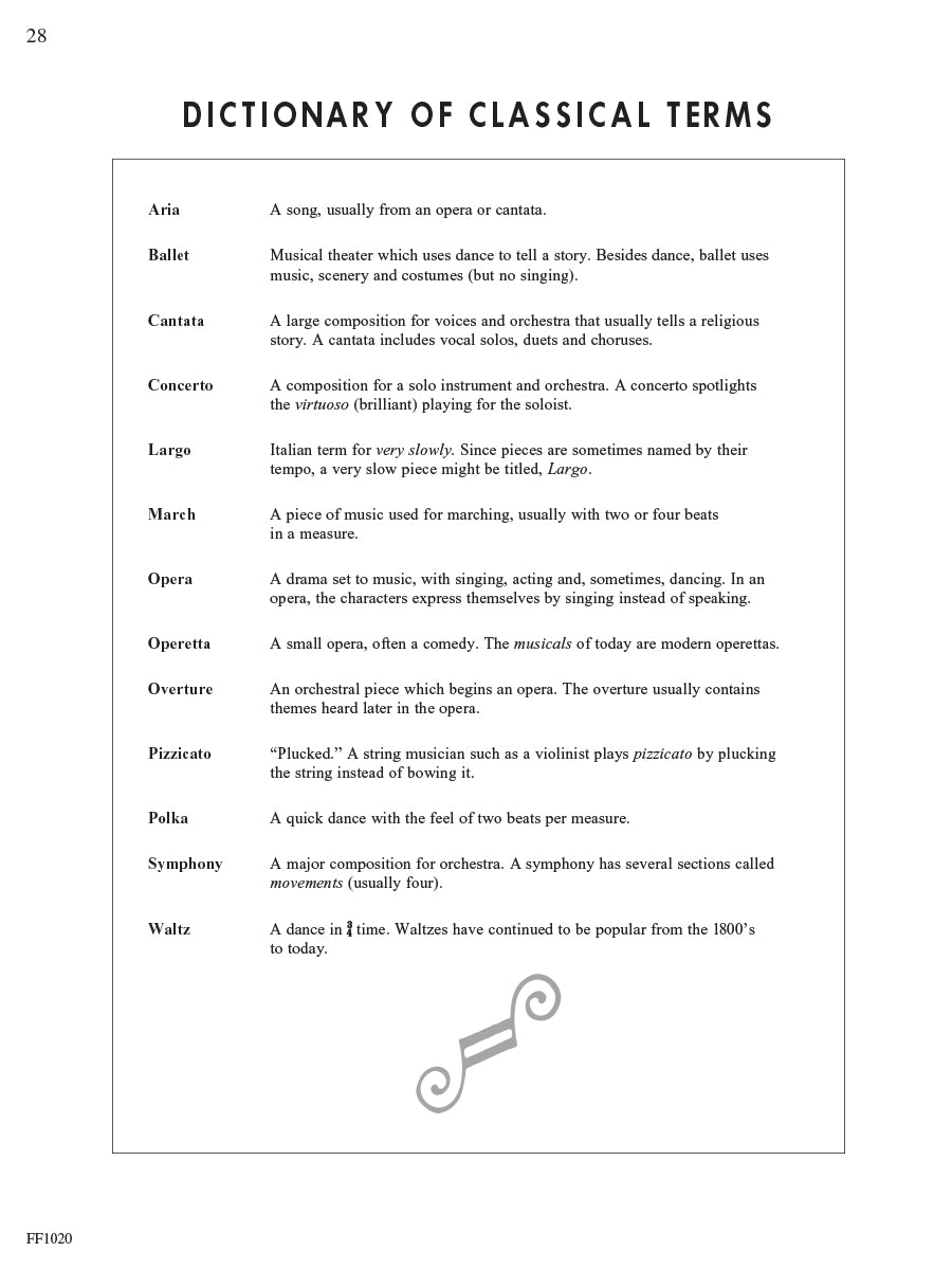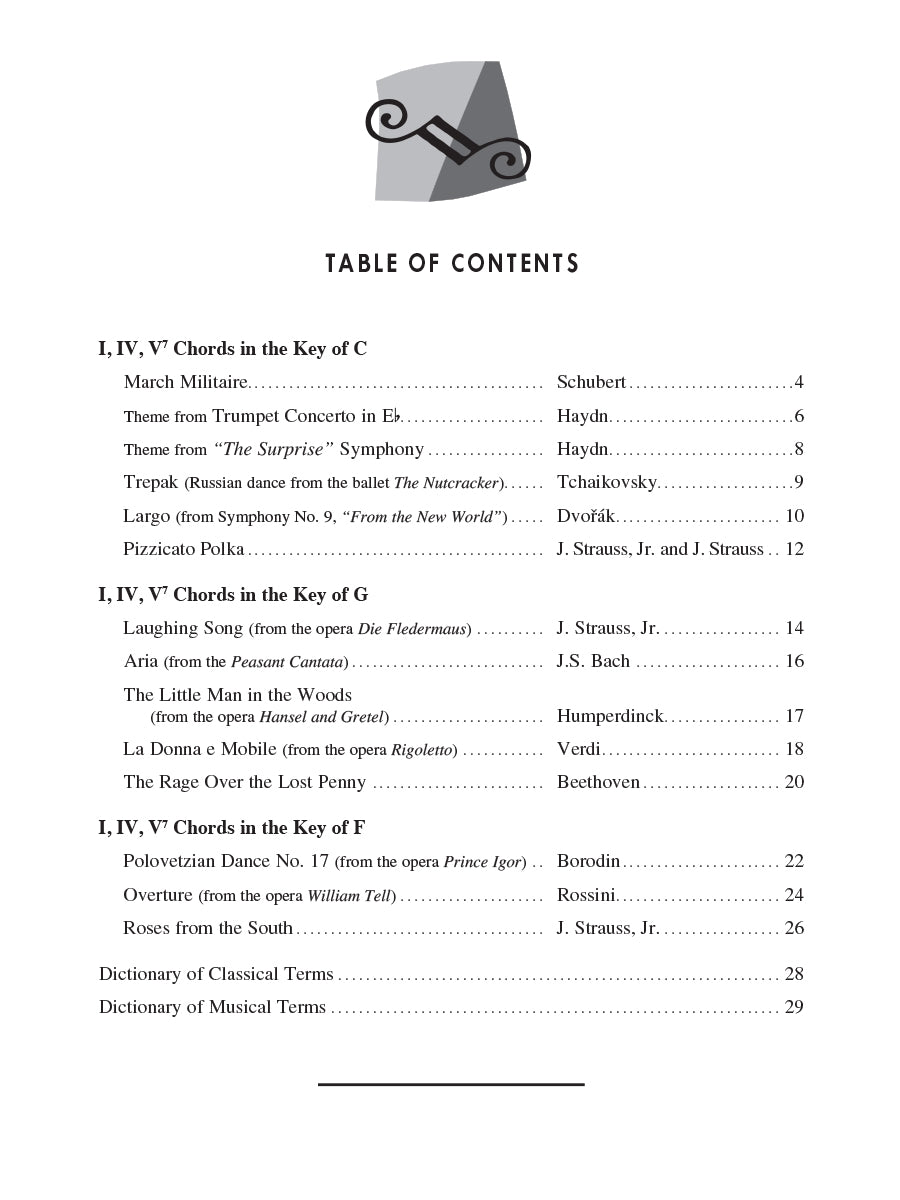 Piano arrangements of some of the great symphonic and operatic masterworks of Western music. Contents include: Aria (from the Peasant Cantata) by J.S. Bach • La Donna e Mobile (from the opera Rigoletto) by Verdi • Largo (from the opera Die Fliedermaus) by J. Strauss, Jr. • The Little Man in the Woods (from the opera Hansel and Gretel) by Humperdinck • March Militaire by Shubert • Overture (from the opera William Tell) by Rossini • Pizzicato Polka by J. Strauss, Jr. & J. Strauss • Polvetzian Dance No. 17 (from the opera Prince Igor) by Borodin • Roses from the South by J. Strauss, Jr. • The Rage Over the Lost Penny by Beethoven • Theme from “The Surprise” Symphony by Haydn • Theme from Trumpet Concerto in Eb by Haydn • Trepak (from the ballet The Nutcracker) by Tchaikovsky.
