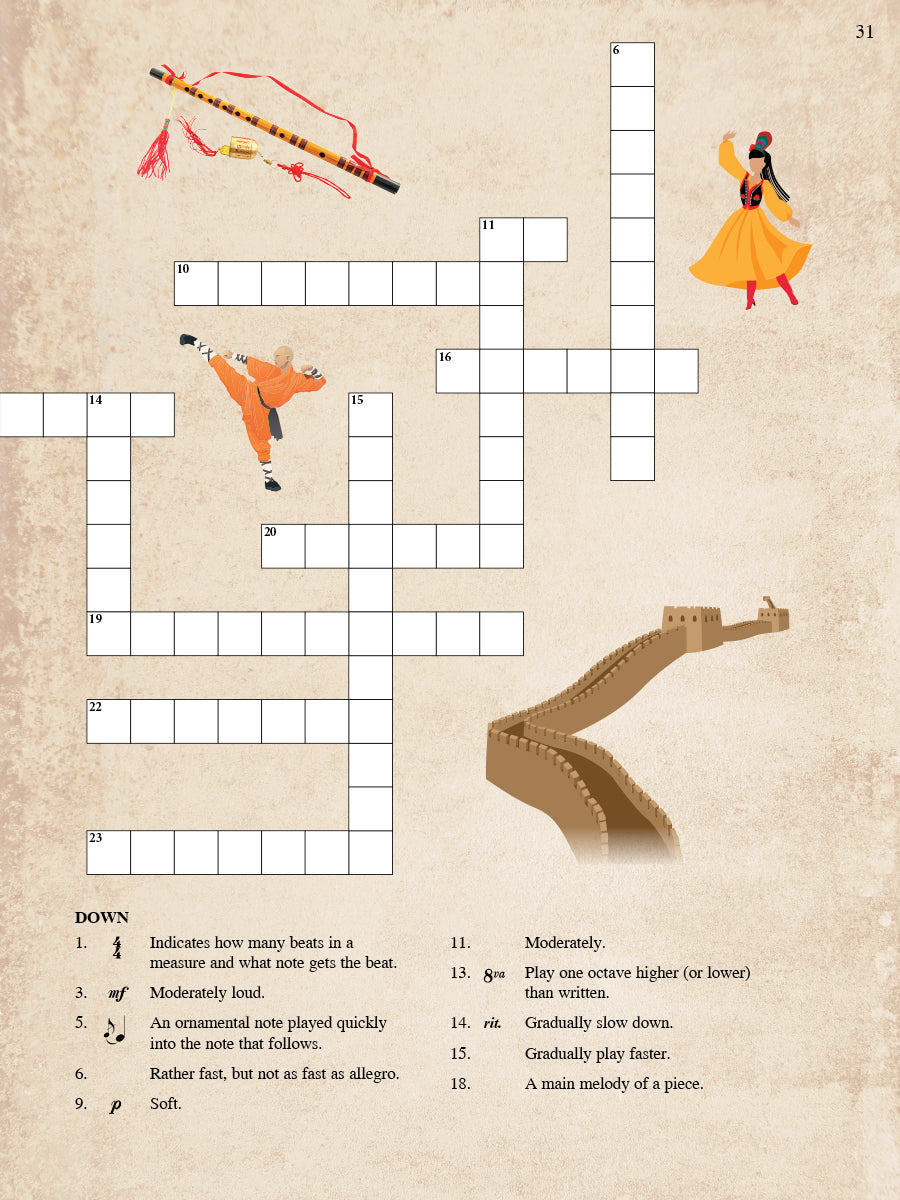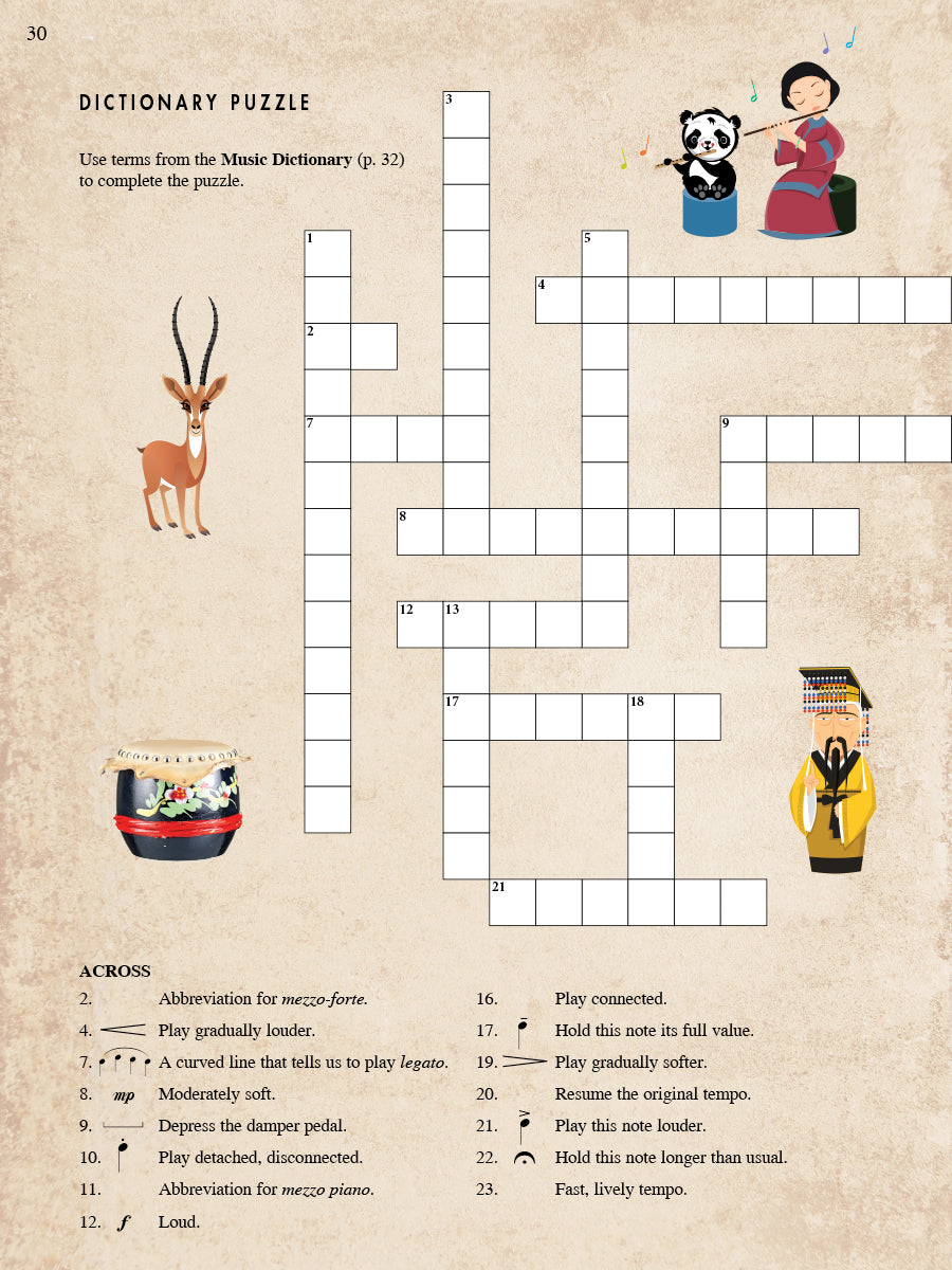 ChordTime Piano Music from China takes Level 2B pianists on a musical trip through original Chinese compositions, folk songs, and dance themes. Mid-elementary students will enjoy analyzing the pentatonic scales and intervals that make up the distinctive Chinese sound. A picture tour and historical information provide rich context, while LeLe the musical panda highlights key performance details and invites creative improvisation. Songs include: Divertimento • Lady Meng Jiang • The Little Bird Song • Little Dance Song • Luchai Flowers • The Luhua Rooster • Picking Flowers • Talk Back
