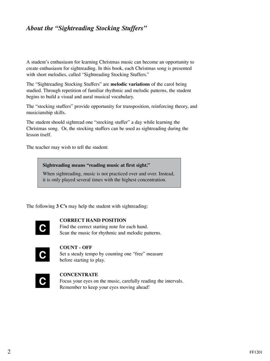 Features some of the most popular Christmas hits arranged to coincide with Level 3B. Contents include: The Twelve Days of Christmas • Silent Night • Christmas Music Calendar • Stuffing the Stockings (theory and review) • Coventry Carol • God Rest Ye Merry, Gentlemen • Hallelujah Chorus • Joy to the World • Parade of the Tin Soldiers • Toyland.
