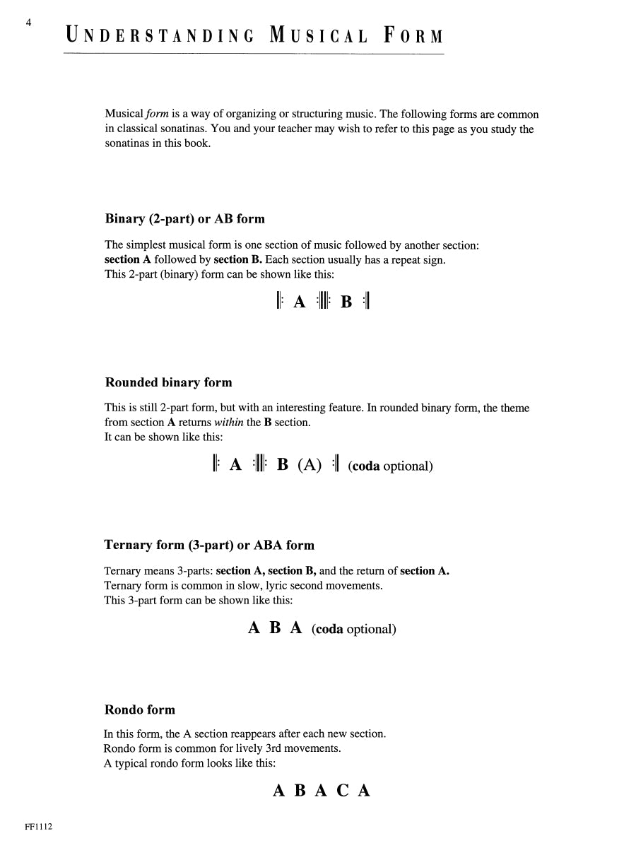 An ample collection of complete sonatinas and selected movements. Contents include: Sonatina in F (Beethoven) • Sonatina in A Minor (Benda) • Sonatina in D (Camidge) • Sonatina Op. 36 No. 2 & 3 (Clementi) • Sonatina Op. 55 No. 3 (Kuhlau) • Sonatina Op. 20 No. 1 (Kuhlau) • Sonatina Op. 49 No. 1 (Lichner) • Sonatina in C (Mozart).