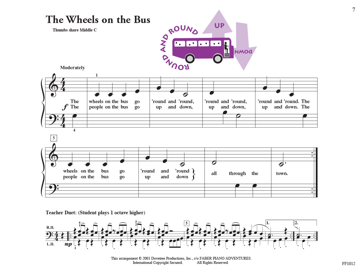 Well-loved folk songs arranged in middle C position with no eighth notes or dotted rhythms, providing the earliest level reading for the beginning pianist. Contents include: Alouette • Baa! Baa! Black Sheep • Eensie Weensie Spider • Grapes Are Great • Hush, Little Baby • London Bridge • On the Bridge • Pop! Goes the Weasel • Row, Row, Row Your Boat • The Muffin Man • Wheels on the Bus • Yankee Doodle.